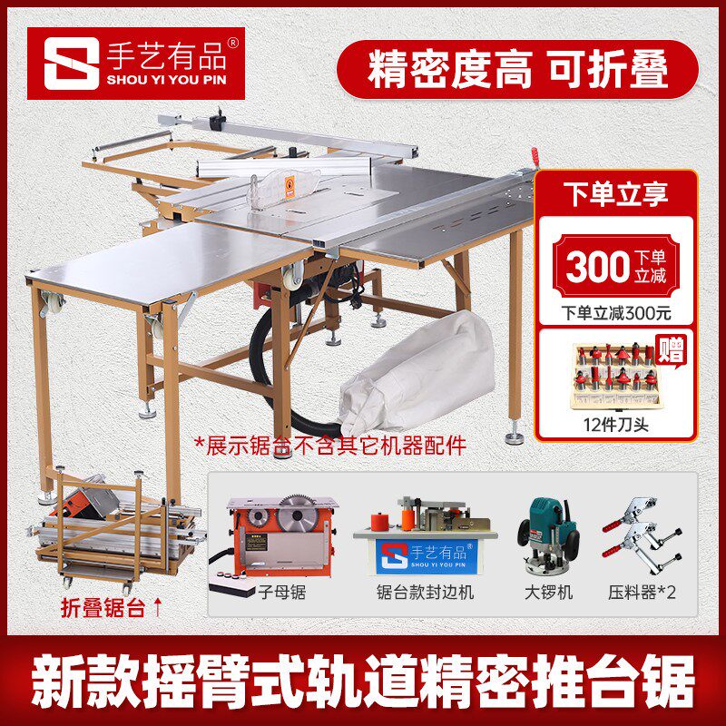 券 90元销量0木工锯台多功能一体机折叠精密轨道推拉推台锯无尘子母台锯工作台