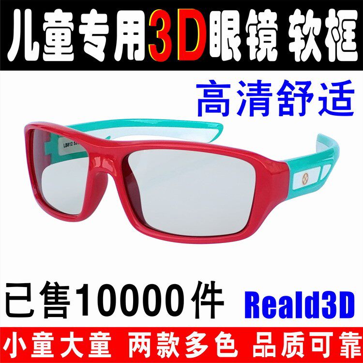 券 5元销量0新一代儿童3D眼镜电影院专用不闪式圆偏光偏振3D电视通用小孩软款
