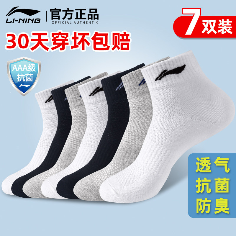 券 6元销量100李宁袜子夏季男运动袜女棉透气吸汗跑步袜中筒羽毛球毛巾底篮球袜