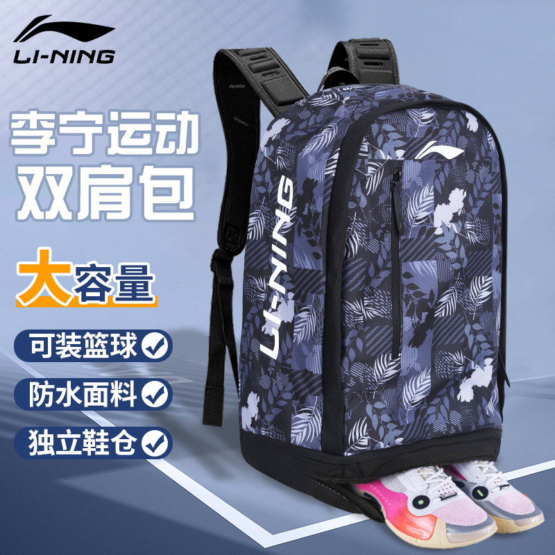 券 3元销量400李宁双肩包书包男高中大学生大容量篮球训练户外运动休闲旅行背包