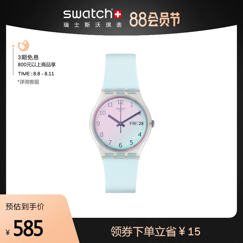 券 15元销量100Swatch斯沃琪瑞士手表女士男士手表蓝粉时尚情侣防水日历石英腕表