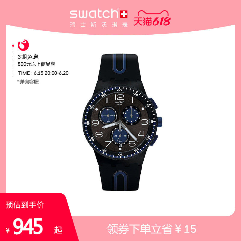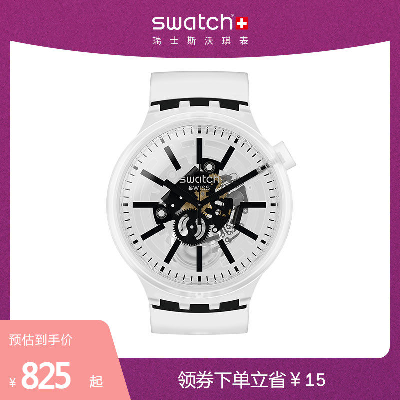 券 15元销量14Swatch斯沃琪瑞士手表男士女士手表大表盘镂空运动防水石英情侣表