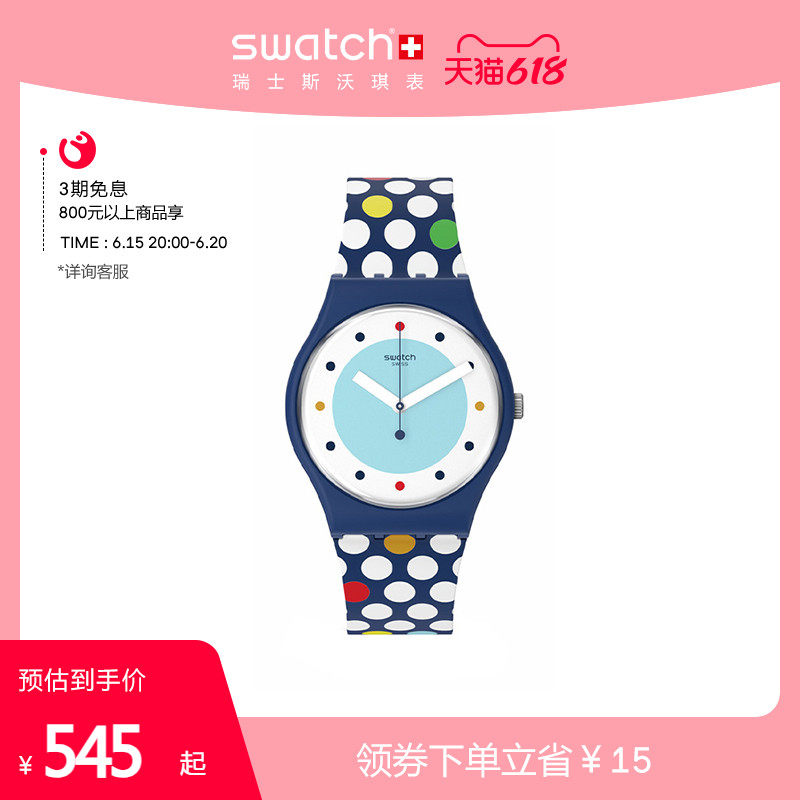 券 15元销量36Swatch斯沃琪瑞士手表男女表潮流时尚撞色石英机芯腕表