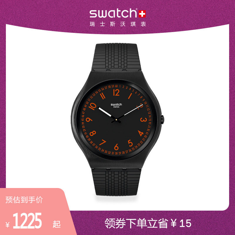 券 15元销量12Swatch斯沃琪瑞士手表男女表潮流运动情侣简约黑色石英腕表