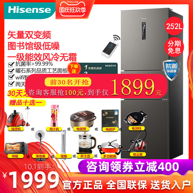 券 100元销量98海信BCD-252WYK1DPUJ 智能一级节能电冰箱家用三开门风冷无霜冰箱