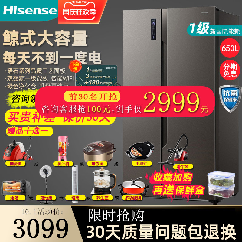 券 200元销量4海信 BCD-650WFK1DPUQ对开门双开门式电冰箱变频风冷无霜智能家用