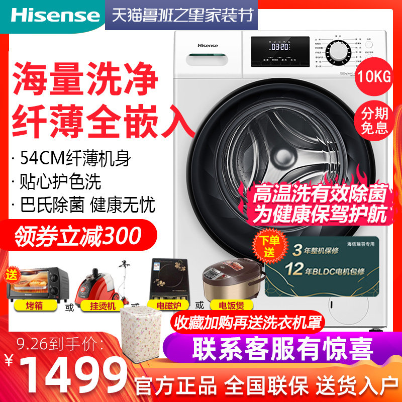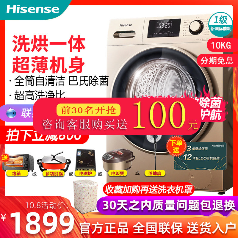 券 100元销量34海信10公斤kg洗烘洗脱一体滚筒洗衣机全自动变频家用HD100DES142F