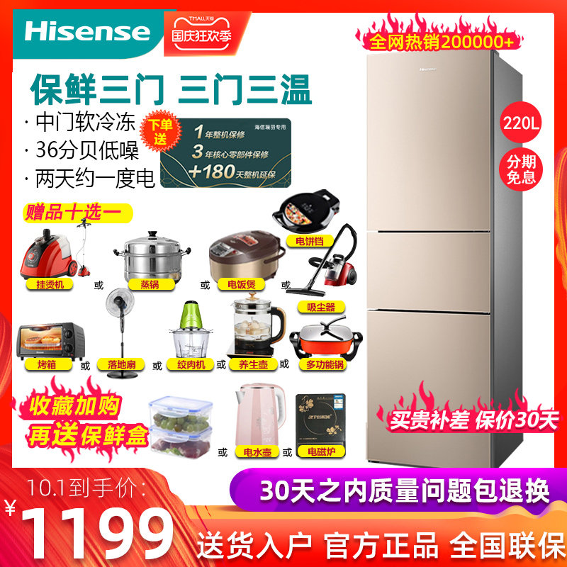 券 50元销量24海信BCD-220D/Q电冰箱三开门冷藏冷冻节能宿舍小型特价家用租房用