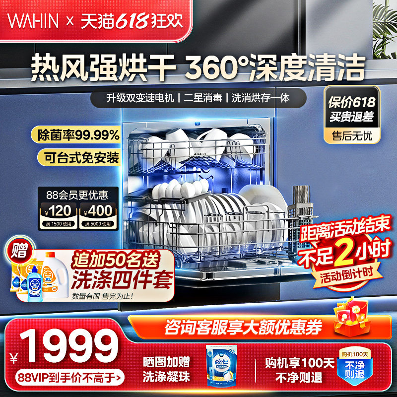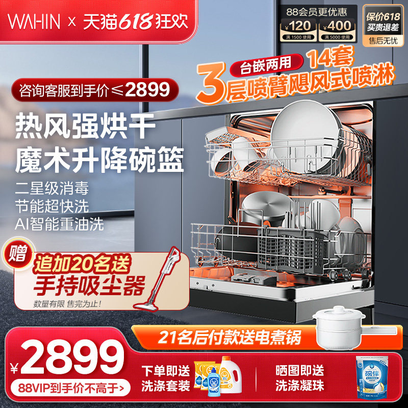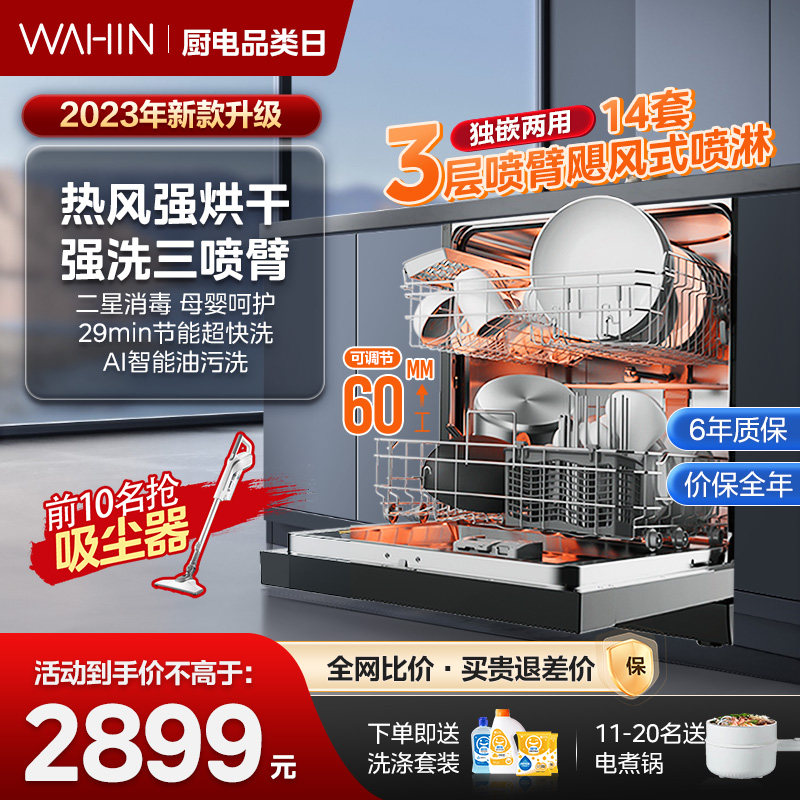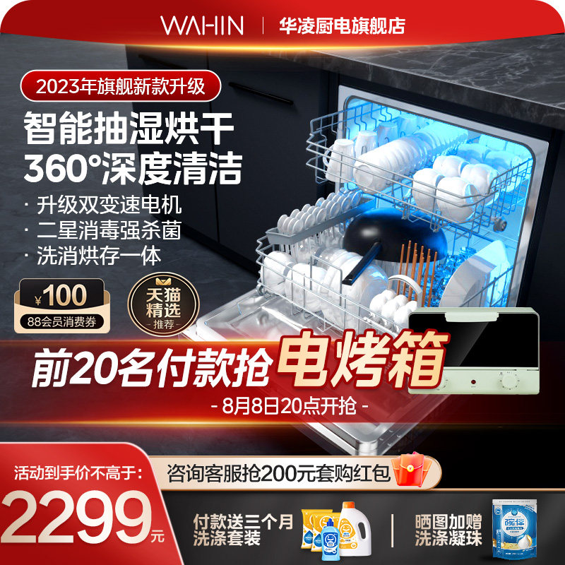 券 900元销量600华凌洗碗机vie6全自动家用台式嵌入式小型大容量烘干消毒旗舰10套