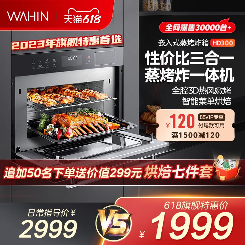 券 700元销量50美的华凌HD300蒸烤一体机嵌入式蒸烤箱家用蒸箱烤箱空气炸三合一