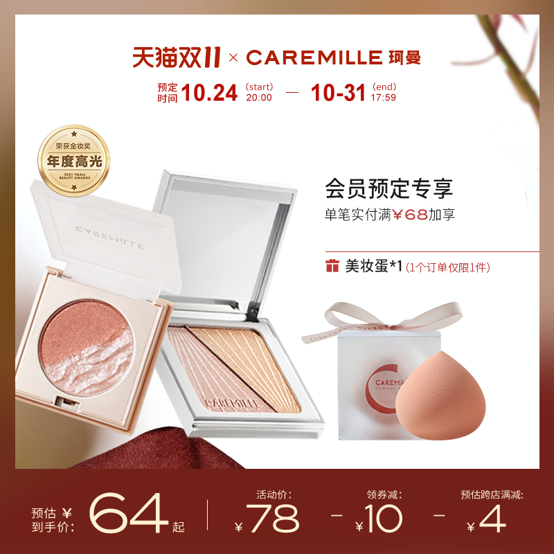 券 12元销量1000珂曼双色小银盒高光哑光修容脸部提亮一体盘神仙闪粉鼻影液体高光