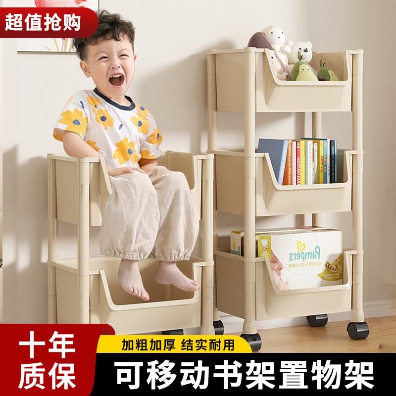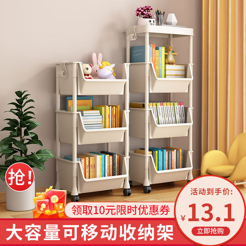 券 10元销量100可移动书架桌面置物架儿童玩具收纳阅读架带轮小推车落地简易书柜