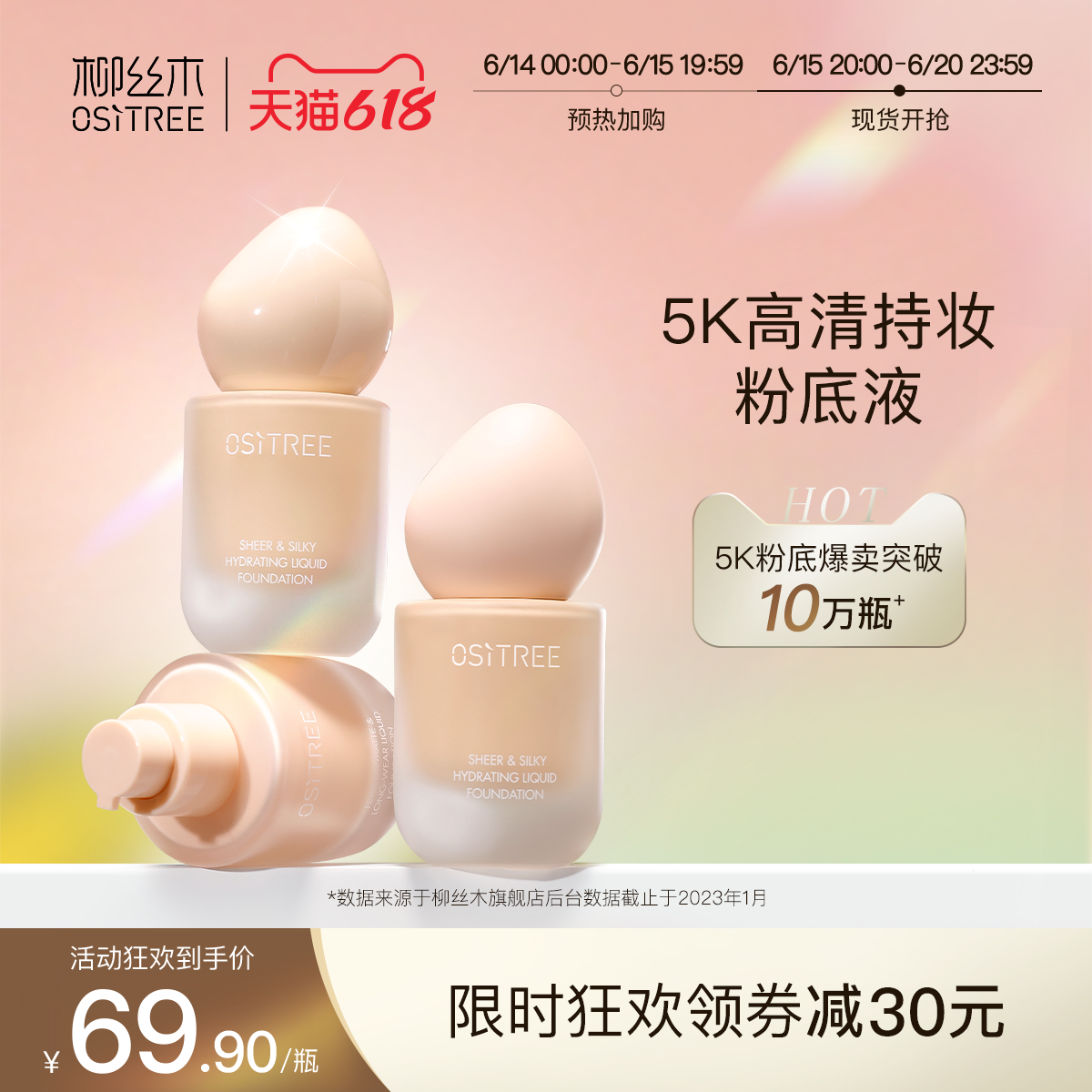 券 30元销量1000柳丝木5k粉底液控油保湿遮瑕持久不脱妆干混油皮亲妈bb霜学生平价
