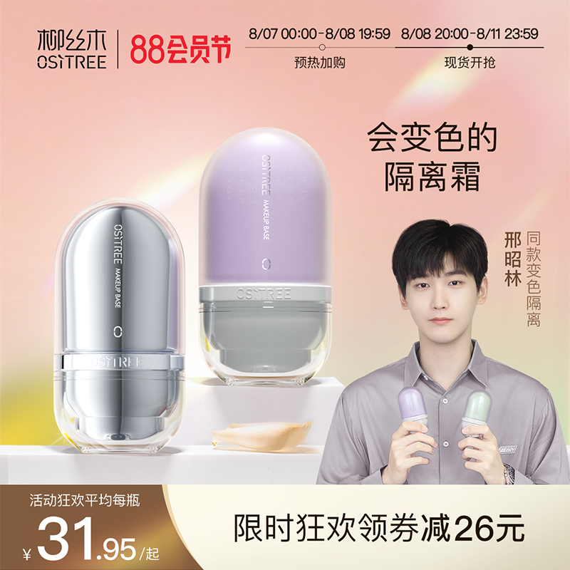 券 30元销量500柳丝木变色隔离霜女素颜霜妆前乳打底提亮遮瑕保湿三合一学生正品