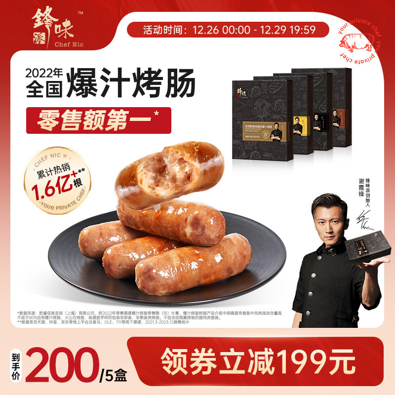 券 57元销量1000锋味派烤肠纯肉火山石香肠热狗肠黑胡椒猪肉肠空气炸锅食材火腿肠
