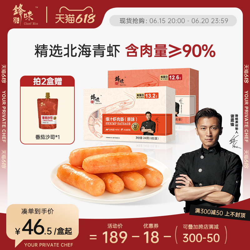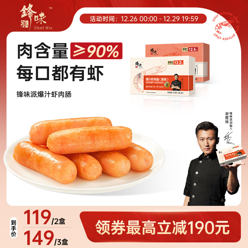 券 79元销量500锋味派虾肉肠儿童早餐虾肠高蛋白空气炸锅爆汁烤肠半成品速食香肠