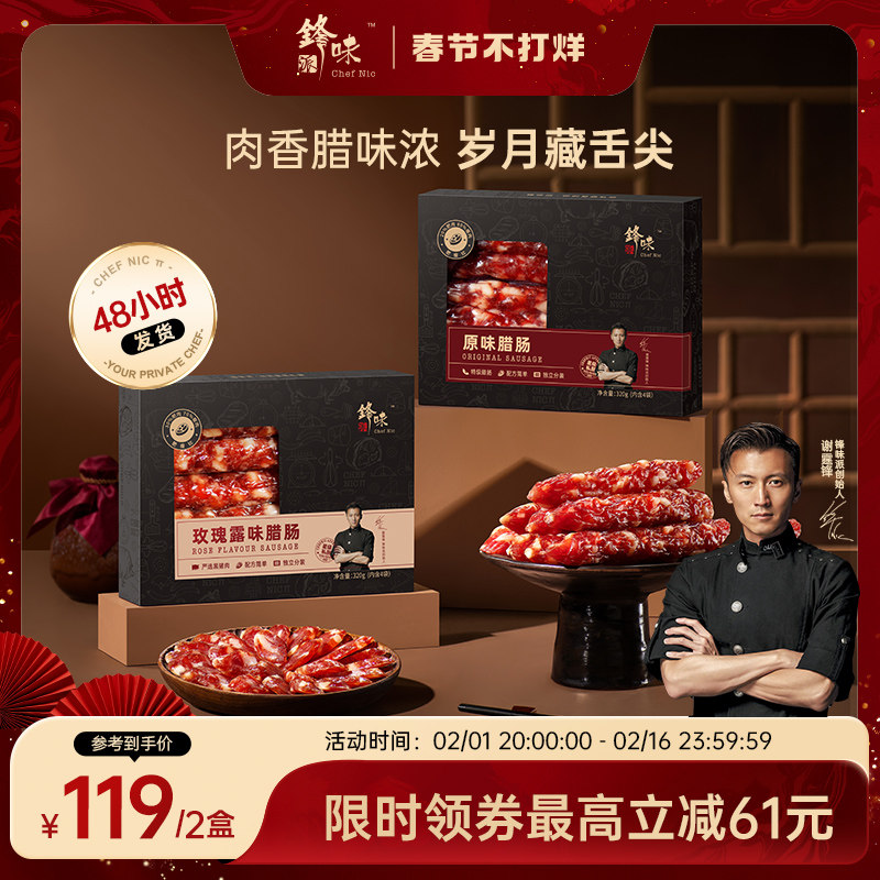 券 41元销量100锋味派腊肠二八广式腊肉肠原味香肠腊味广东特产新年广味玫瑰露肠