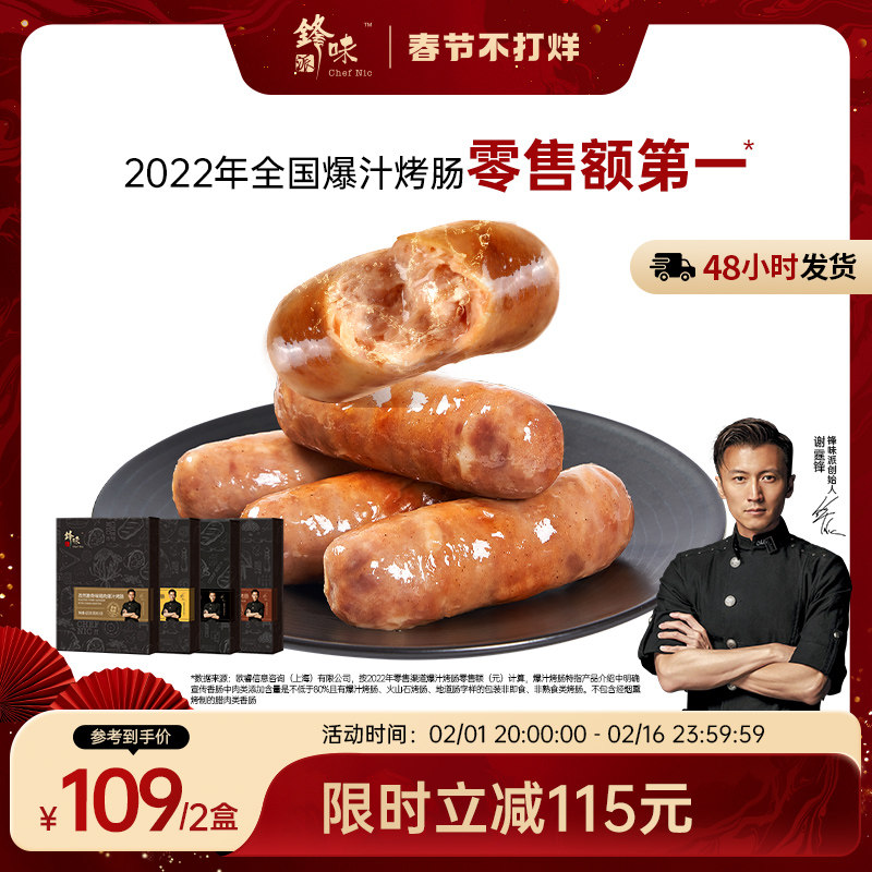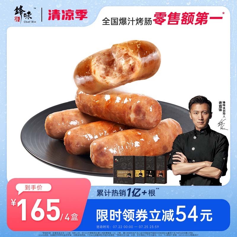 券 54元销量100锋味派烤肠纯肉火山石香肠热狗地道肉肠空气炸锅烧烤台式火腿肠