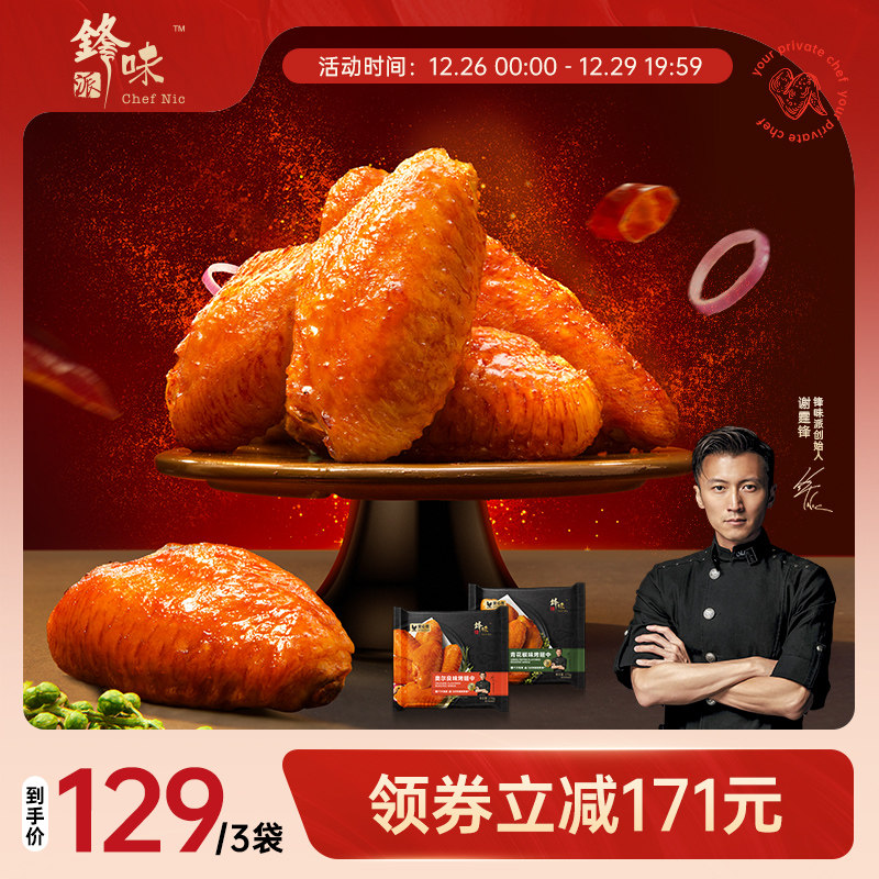 券 199元销量5000锋味派奥尔良烤鸡翅中翅生鲜冷冻半成品烤翅空气炸锅食材炸鸡翅根