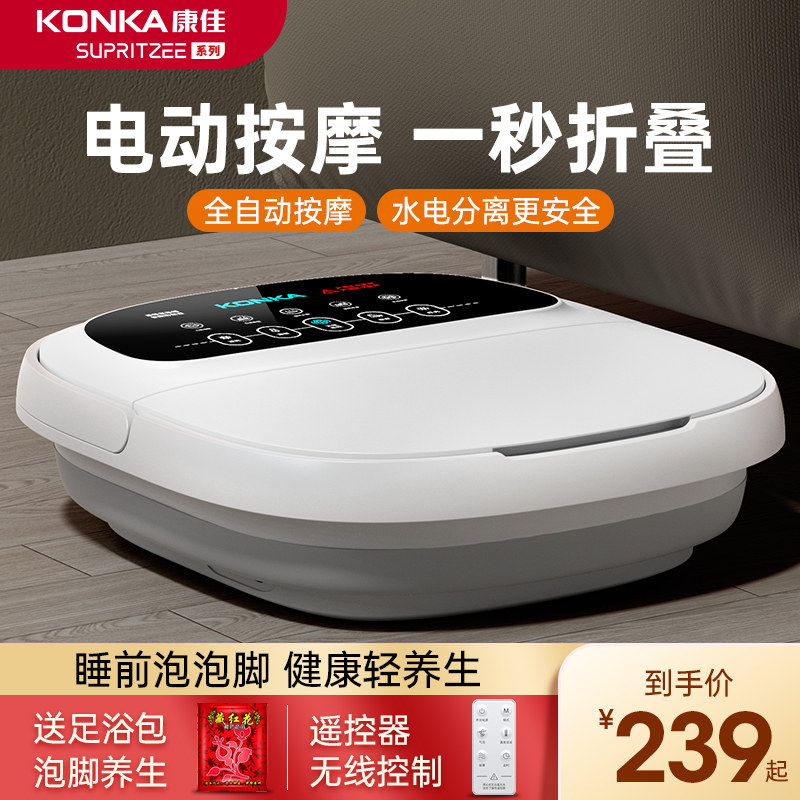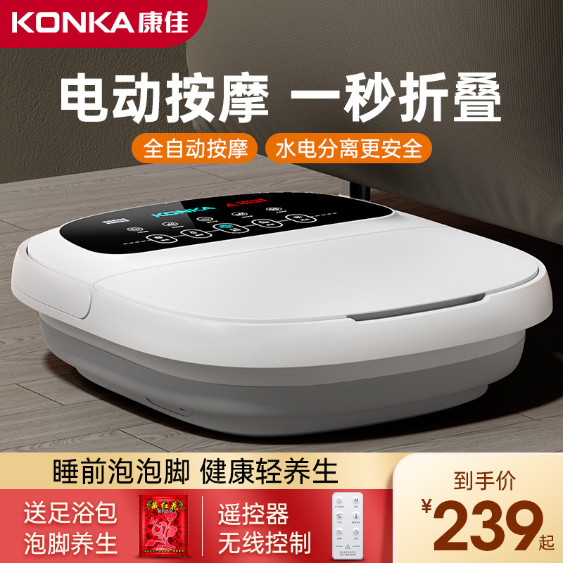 券 100元销量27康佳折叠泡脚桶电加热全自动恒温家用电动按摩多功能折叠足浴盆