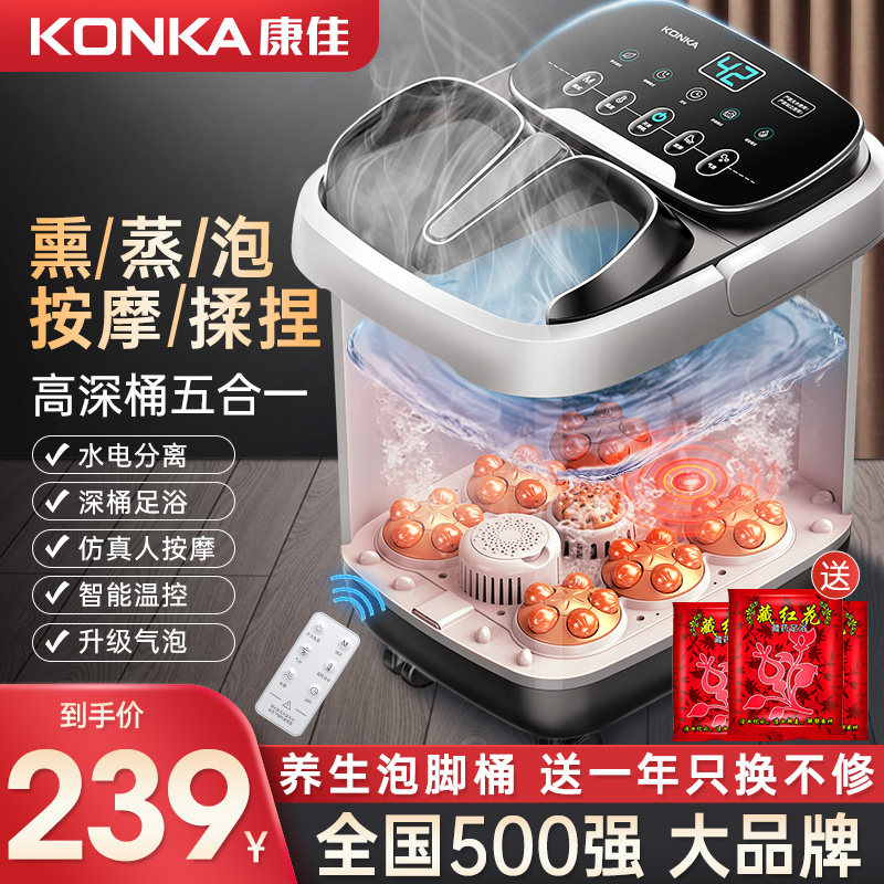 券 220元销量23康佳泡脚桶全自动加热恒温智能按摩足浴桶家用小腿高深电动足浴盆