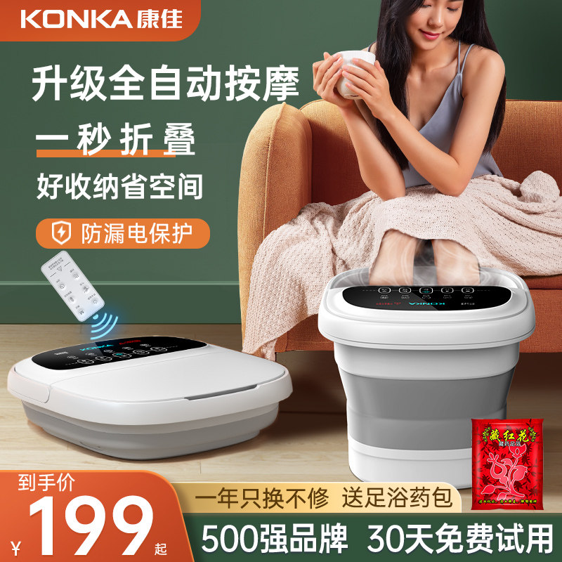 券 200元销量26康佳可折叠泡脚桶恒温加热便携式全自动电动按摩家用高深足浴盆器