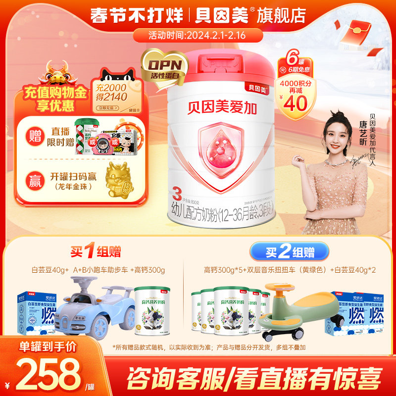 券 464元销量0贝因美爱加婴幼儿配方奶粉3段800g*6罐正品官网 其他段位咨询客服
