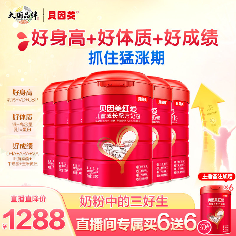券 211元销量100【购物金93折】贝因美红爱儿童成长奶粉4段3岁以上700g*6罐