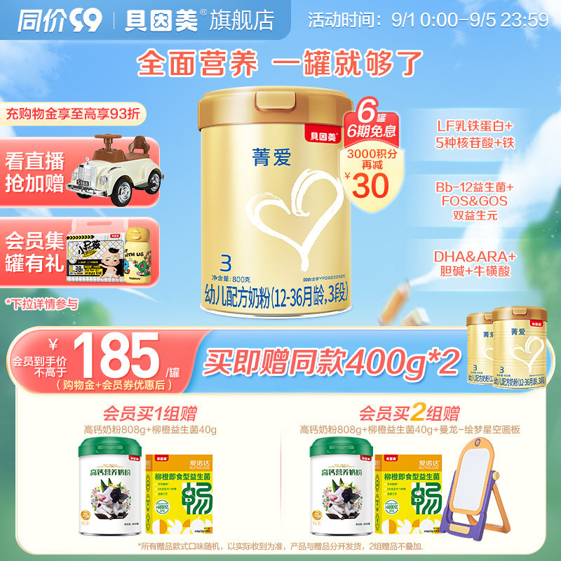 券 100元销量100【新国标】贝因美菁爱婴幼儿3段奶粉800g*6罐乳含铁蛋白DHA益生菌
