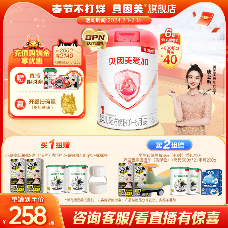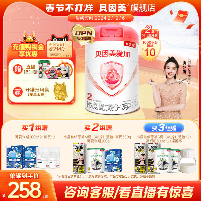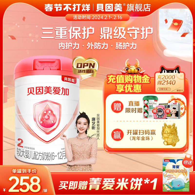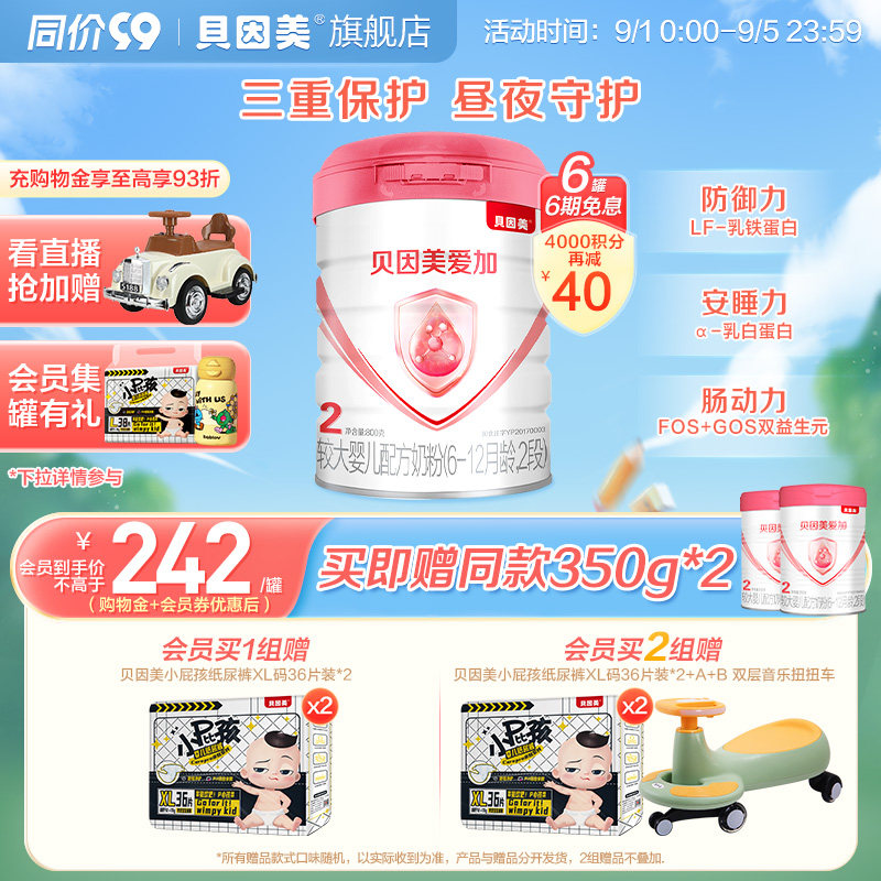 券 100元销量10【购物金优惠】贝因美爱加2段婴儿奶粉6-12个月乳铁蛋白800g*2罐