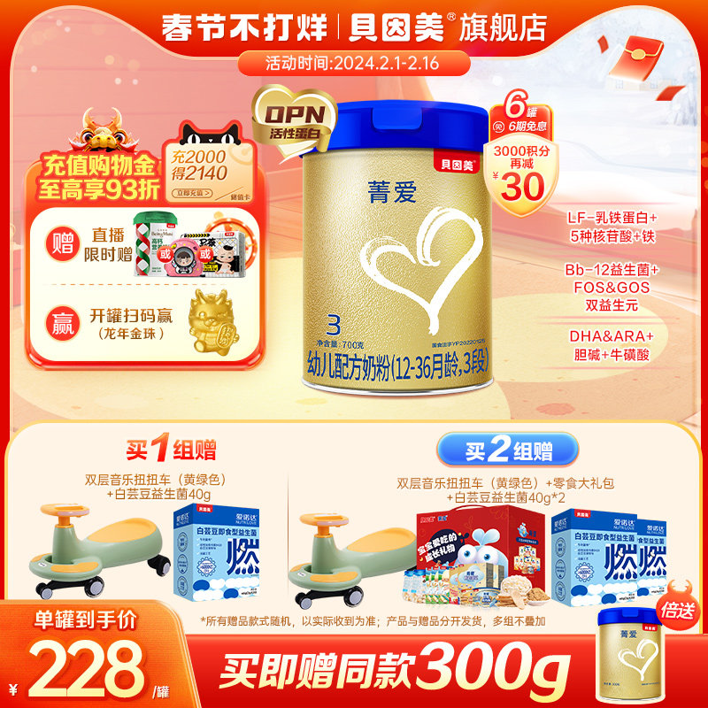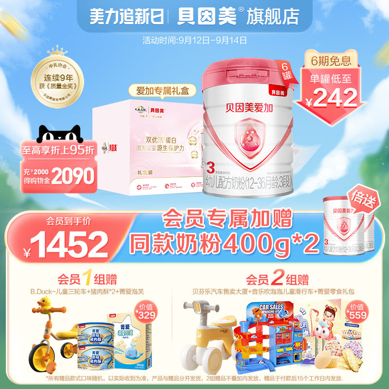 券 218元销量100【购物金享优惠】贝因美爱加3段奶粉800g*6罐DHA婴儿乳铁蛋白正品