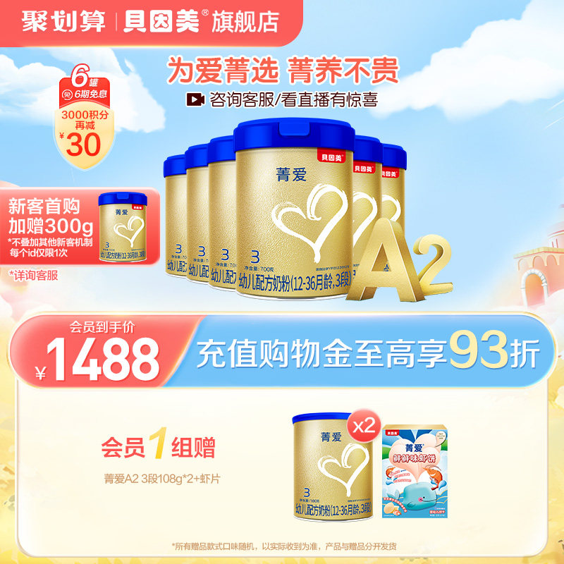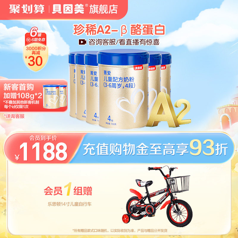 券 200元销量10【购物金93折】贝因美菁爱A2奶粉4段700g6罐 A2奶源 官方旗舰店