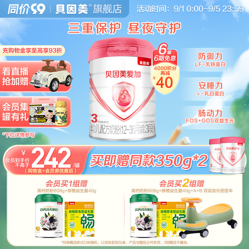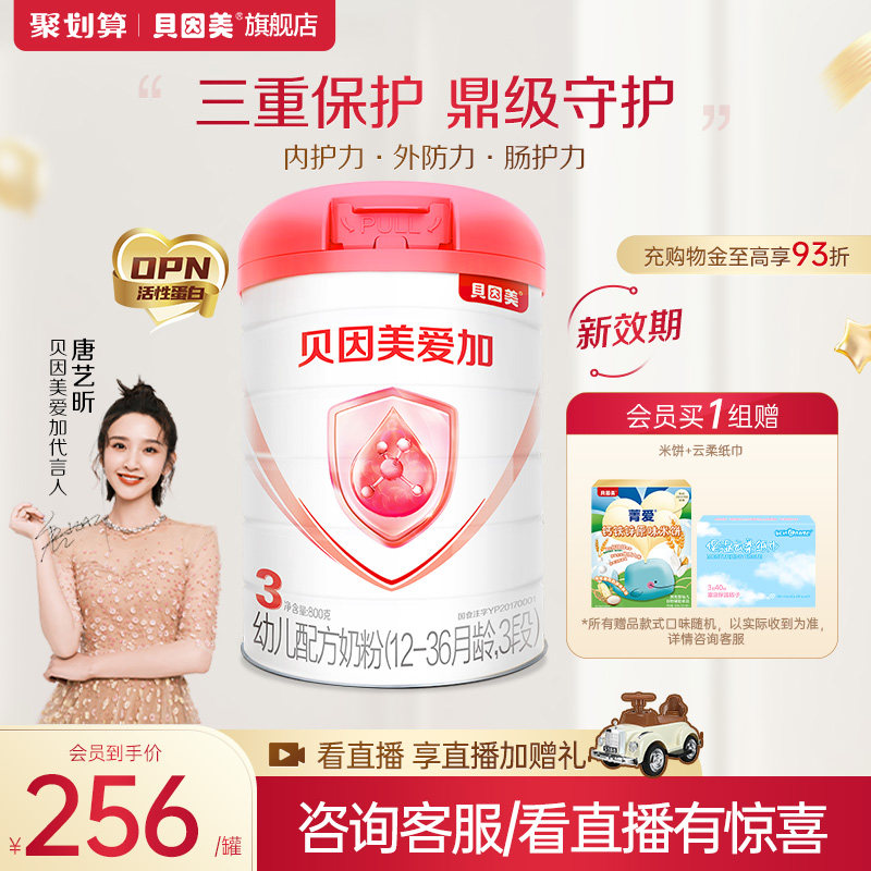 券 100元销量100贝因美爱加幼儿奶粉3段添加乳铁蛋白800g*1罐旗舰店官网