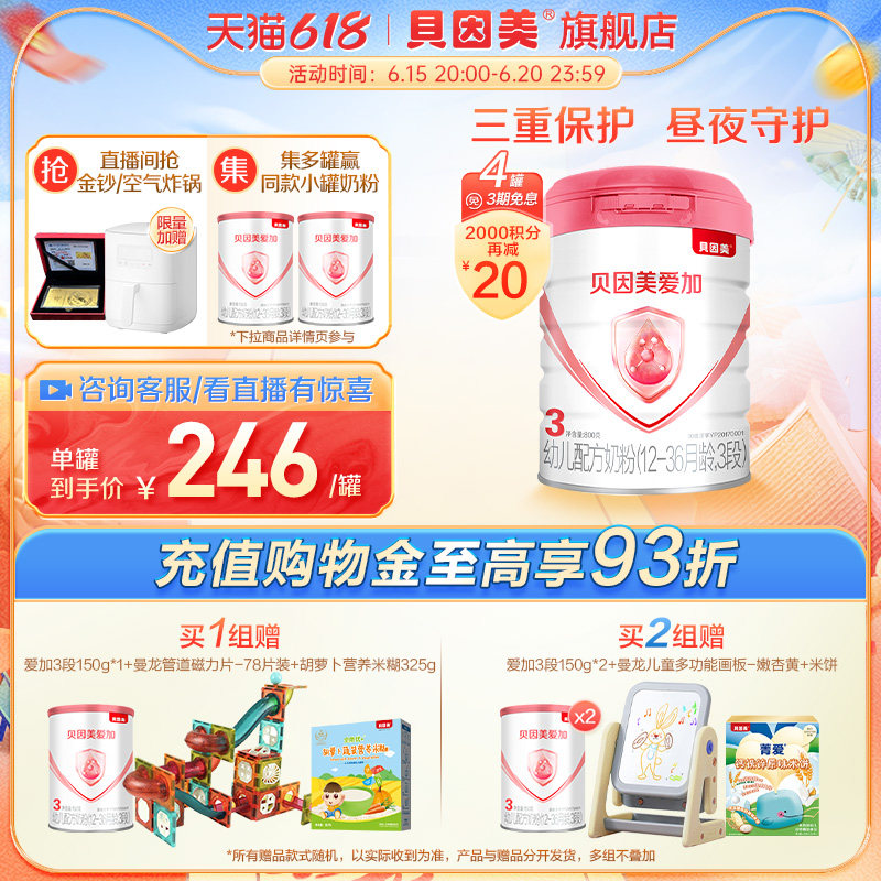 券 180元销量10【购物金享优惠】贝因美爱加幼儿奶粉3段1-3岁牛奶粉800g*4罐