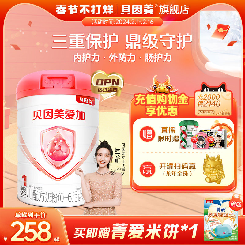 券 120元销量100【新升级】贝因美爱加婴儿配方奶粉1段800g*1罐乳铁蛋白DHA旗舰店