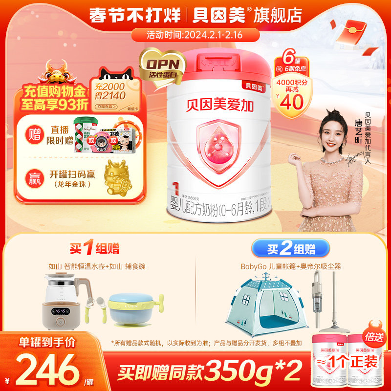 券 211元销量500贝因美爱加婴儿配方奶粉1段800g*6罐乳铁蛋白旗舰店含乳铁蛋白