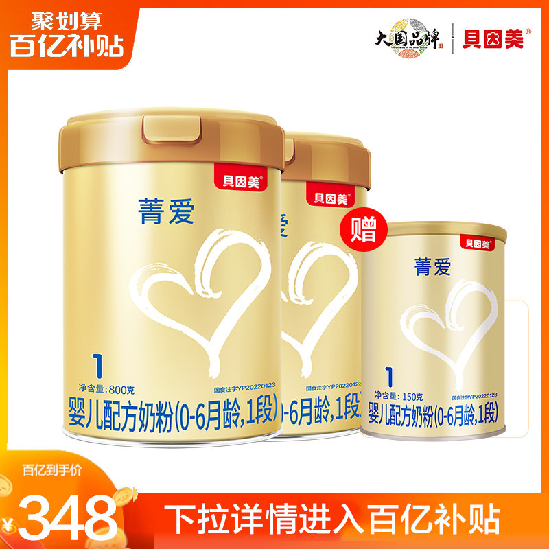 【百亿补贴】贝因美菁爱婴儿配方奶粉1段800g*2+150g小罐乳铁蛋白