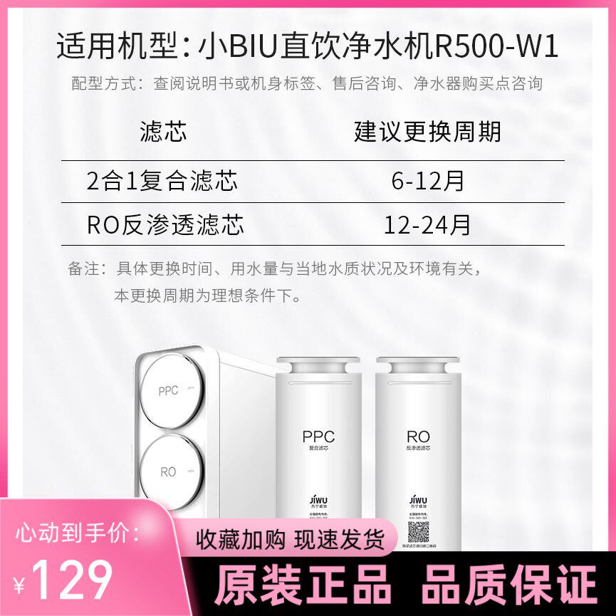 券 6元销量0苏宁极物小biu净水器R500-W1直饮净水机ppc复合滤芯原装RO反渗透