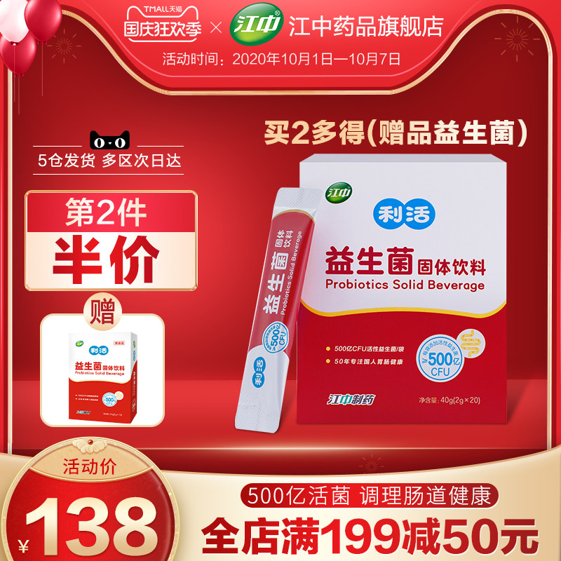 券 10元销量3000江中益生菌大人儿童女性孕妇肠道肠胃便秘调理合益生元活菌冻干粉