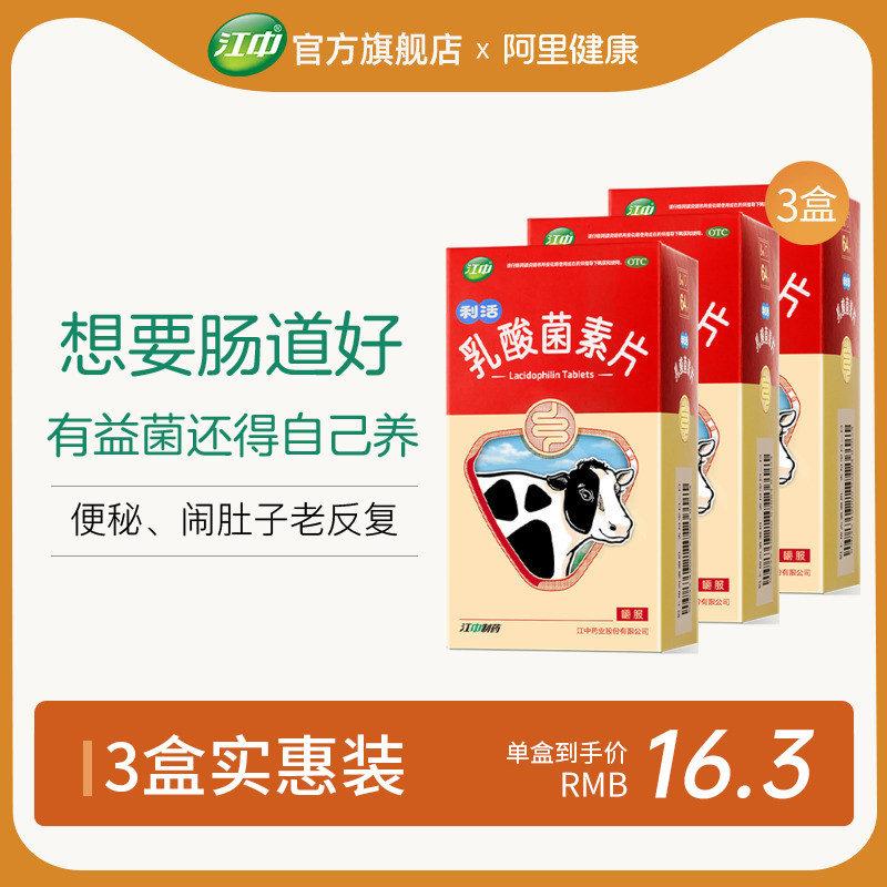 券 10元销量3000江中乳酸菌素素片64片大人儿童腹泻便秘养出益生菌调理肠胃炎正品