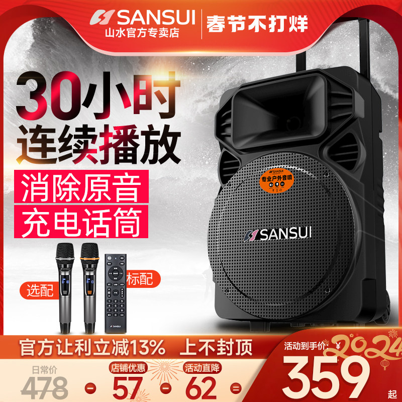 山水A12-66广场舞音响户外音箱K歌移动拉杆带无线话筒便携式ktv