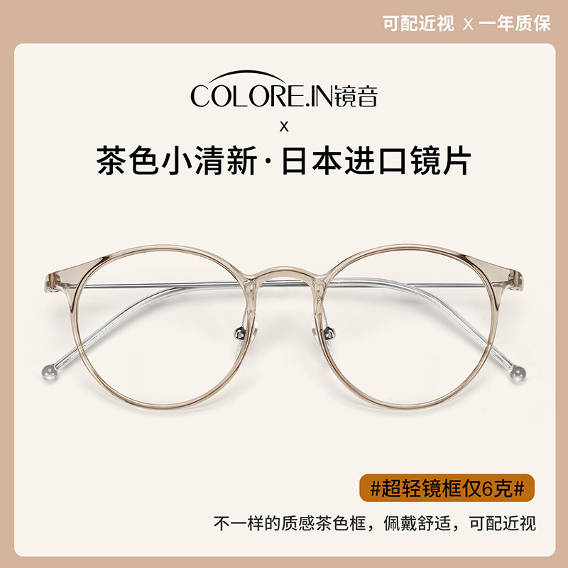券 5元销量100超轻冷茶色近视眼镜框女透明小框抗防蓝光辐射平光镜眼睛可配度数