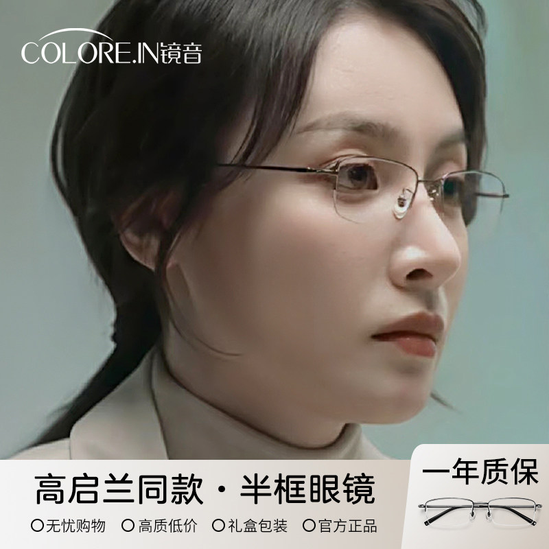 券 21元销量100防蓝光近视眼镜框女高启兰同款网上配高级感半框纯钛可配度数眼睛