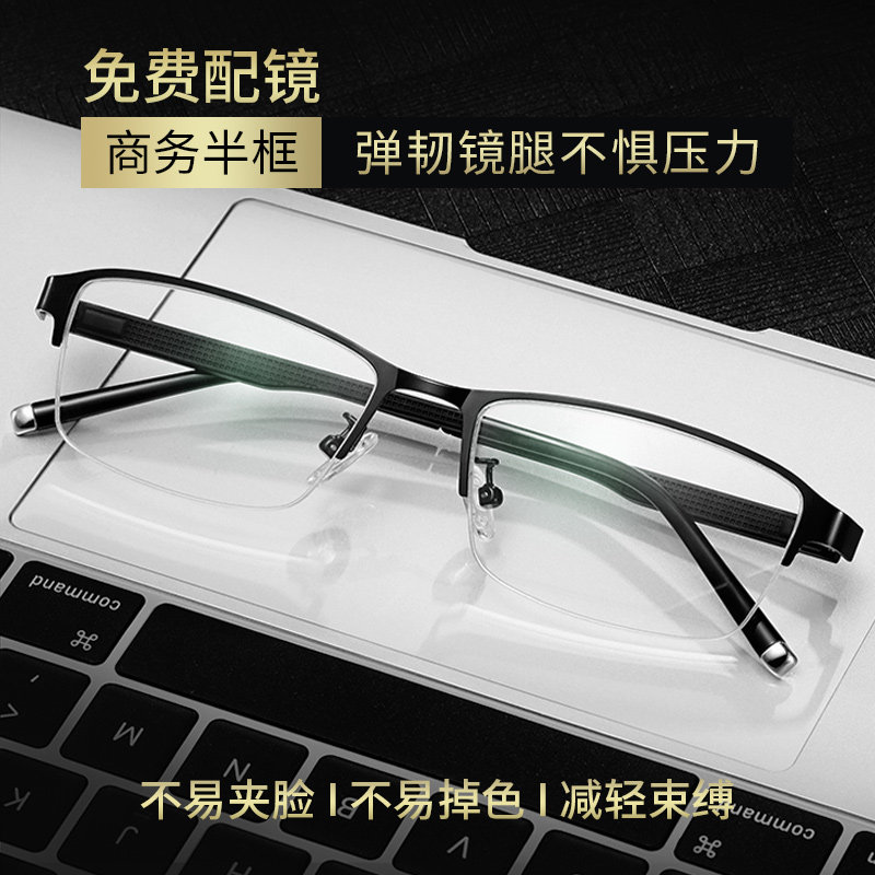 券 21元销量1000半框近视眼镜框高级感理工男款防雾纯钛超轻可配度数防蓝光眼睛架