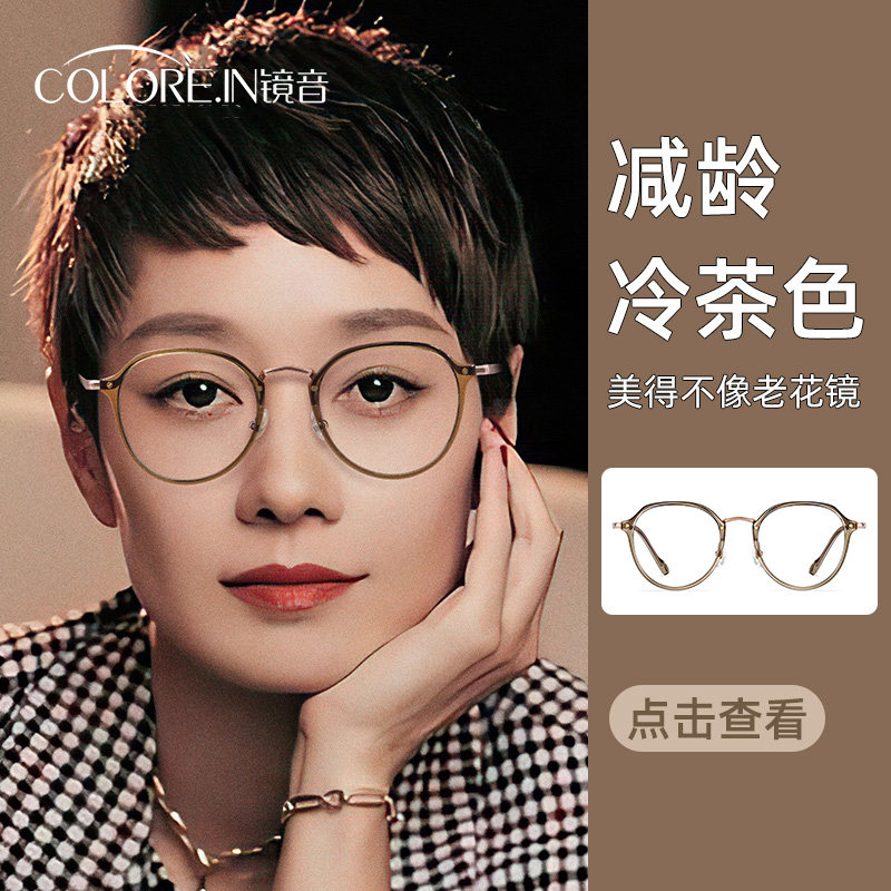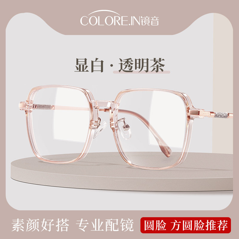 券 5元销量94超轻冷茶色近视眼镜框女款素颜大脸显瘦可配度数镜片配眼睛镜架