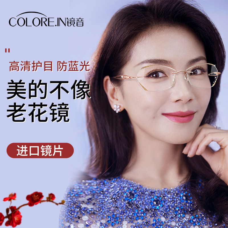 券 5元销量100无框切边老花镜女款时尚超轻高清高档正品品牌防蓝光中老年人眼镜