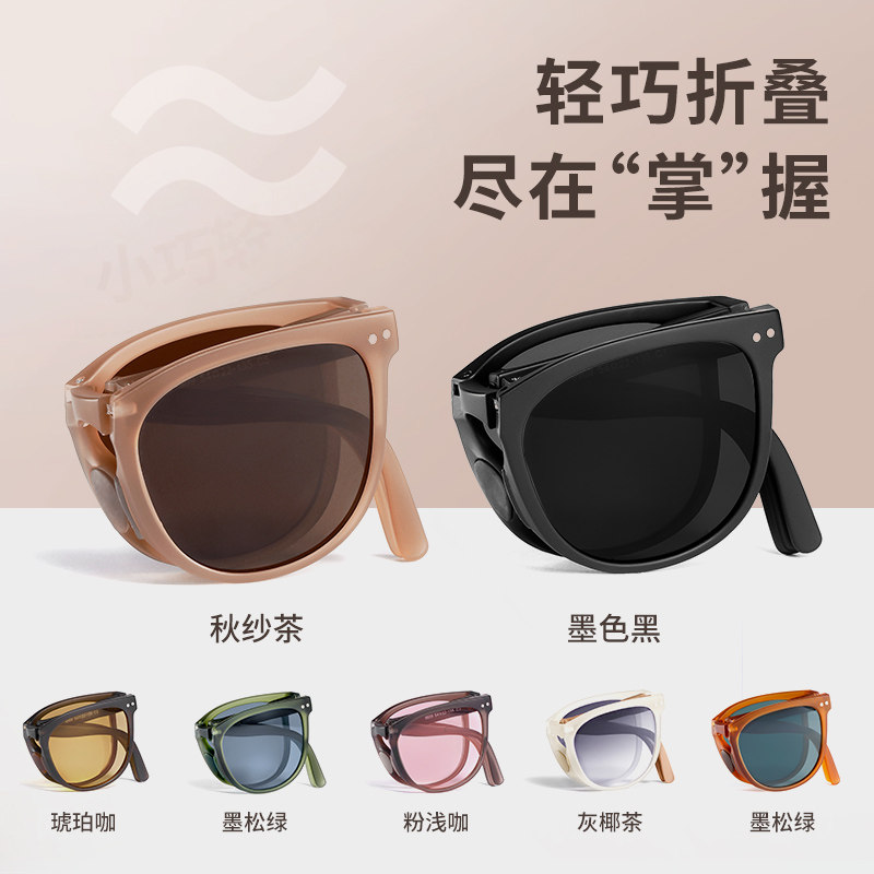 券 5元销量1000镜音焦下可折叠墨镜女款防紫外线2023新款超轻高级感防晒太阳眼镜