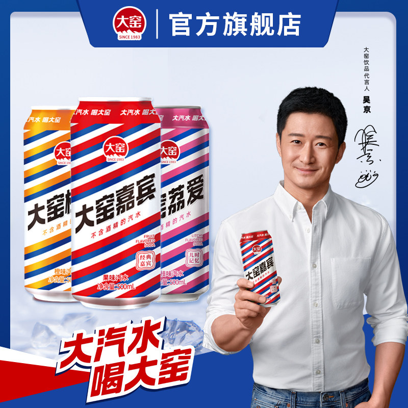 【吴京代言】大窑嘉宾橙味桔汁荔枝果汁汽水饮料易拉罐500ml*8