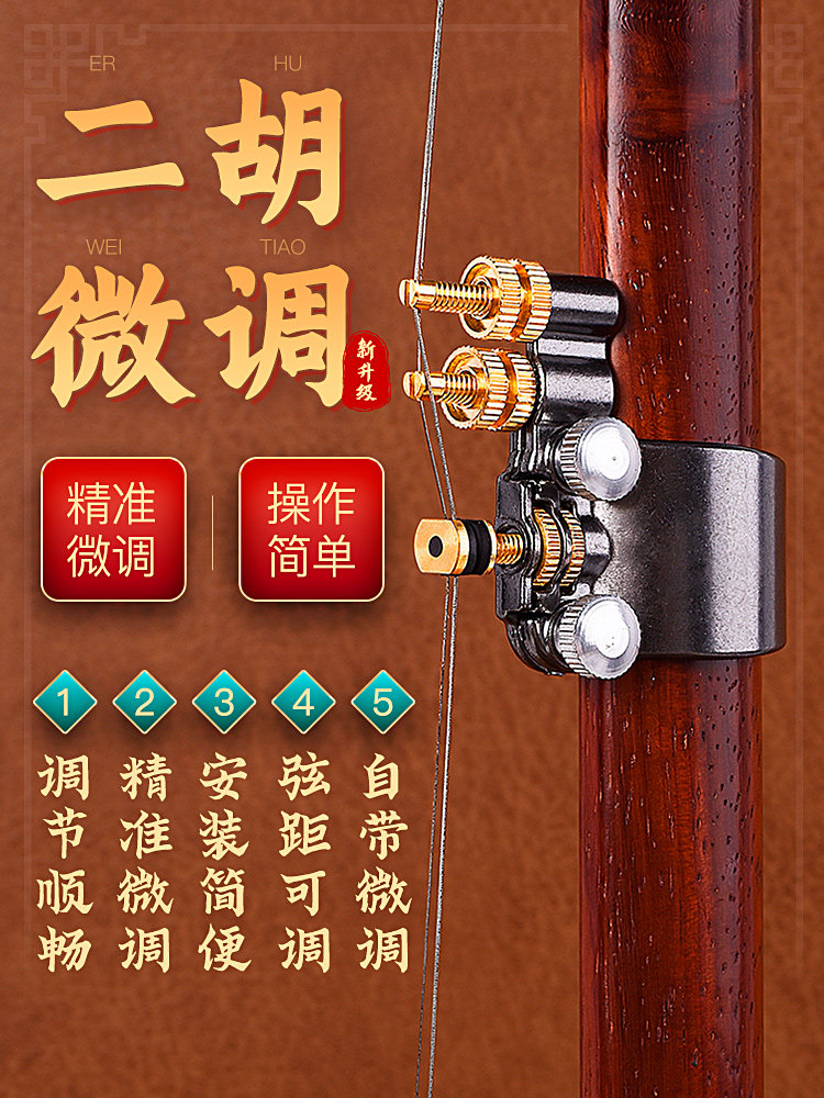 券 1元销量723年新款二胡新型微调器专业第五代琴弦千斤可调节调音器黄铜配件