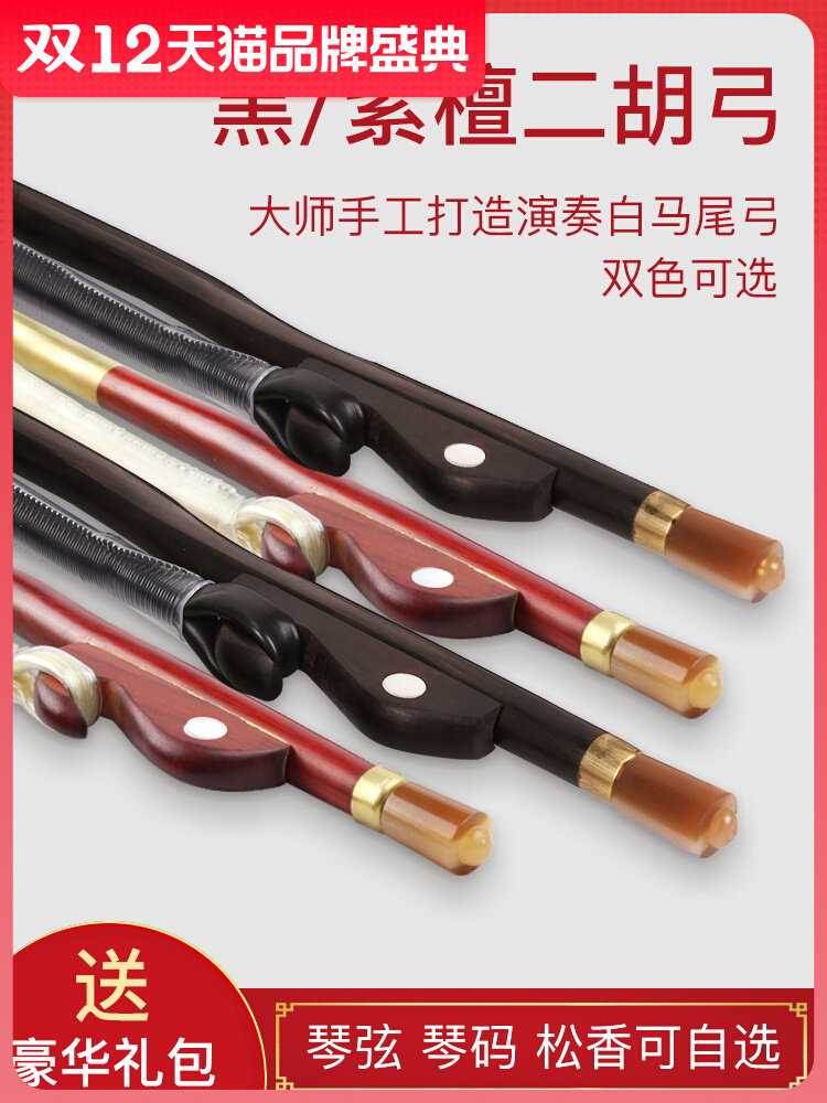 券 10元销量0二胡弓子弓毛真马尾黑檀紫檀琴弓专业84cm弓二胡微调松香乐器配件